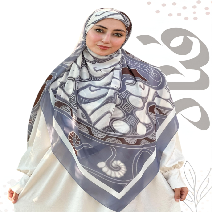 خمار ماليزي شيفون مربع 150×150 بلون ديجيتال مطبوع، خامة عالية الجودة ولمسة ناعمة مثالية لكل محجبة. احصلي على إطلالة فاخرة وراحة استثنائية في كل مناسبة. اكتشفي الآن جمال البساطة والأناقة.