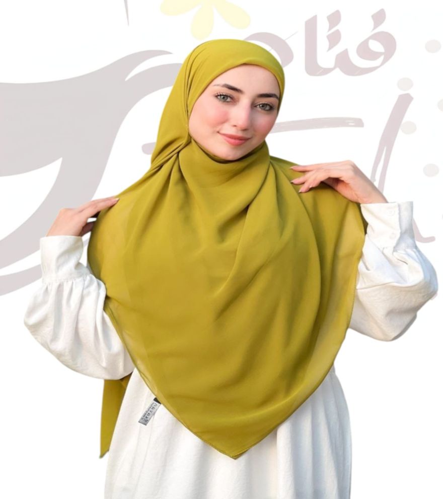 استمتعي بإطلالة مليئة بالحيوية والثقة مع الخمار الماليزي الشيفون بلونه الأصفر المسطردة – لون دافئ ينبض بالطاقة والأناقة.