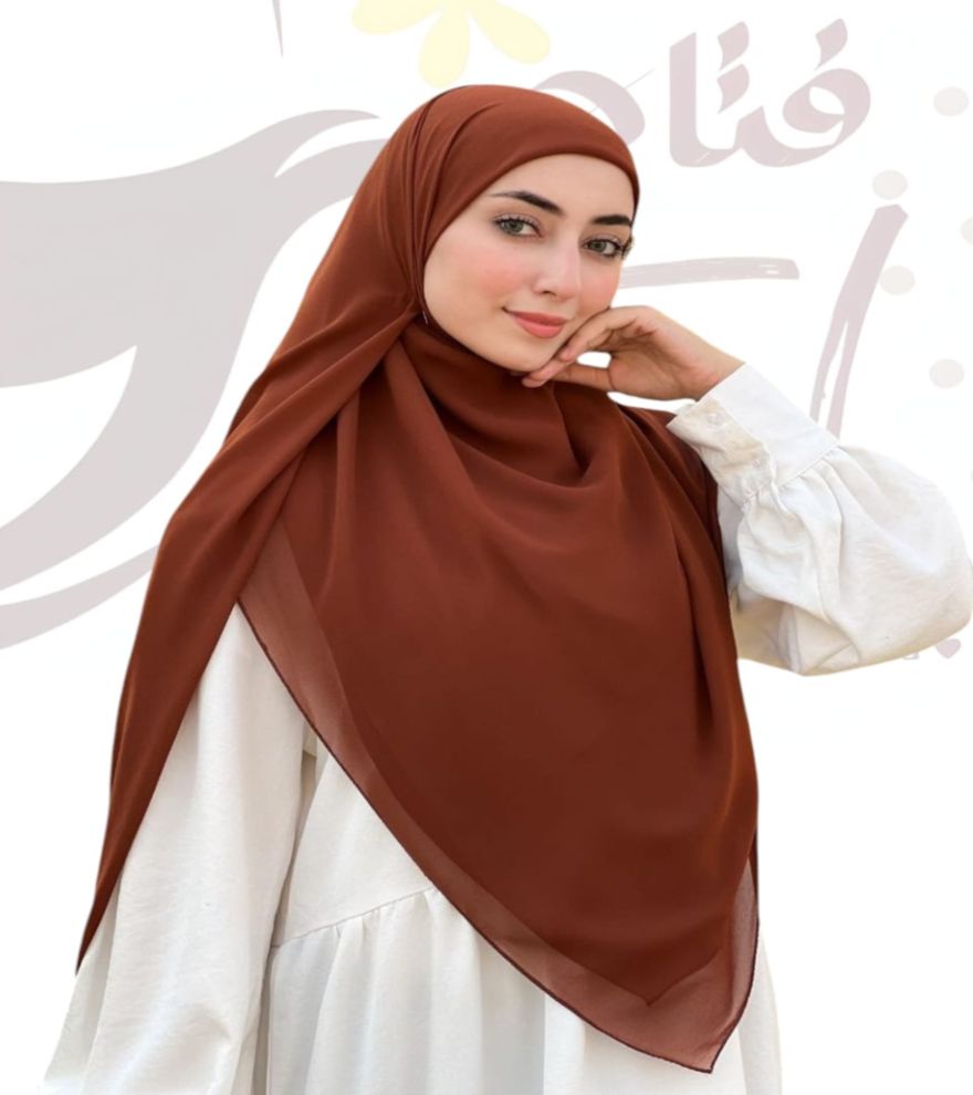 خمار ماليزي شيفون مربع 150×150 بلون طوبي أنيق – خامة ناعمة وفاخرة، لون دافئ مثالي لكل الأوقات، تصميم عملي يناسب الإطلالات اليومية والمناسبات.
