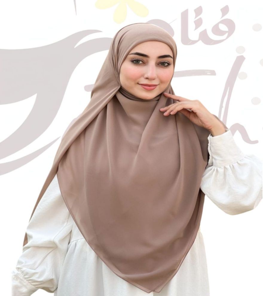 بتصميم مربع أنيق (150 × 150 سم)، وخامة شيفون عالية الجودة، خفيفة على البشرة وتمنحكِ تهوية مثالية مع ثبات جيد طوال اليوم. اللون الكافيه يجمع بين الدفء والاحتشام، ويمنحكِ حرية تنسيق لا حدود لها.