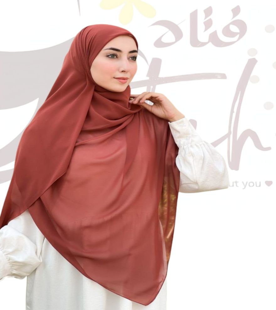 تميّزي بإطلالة غنية بالتفاصيل مع خمار ماليزي شيفون مربع – لون طوبي غامق، المصنوع من خامة شيفون عالية الجودة تنسدل بنعومة وتمنحكِ لفة ثابتة ومريحة دون انزلاق أو تجاعيد مزعجة.