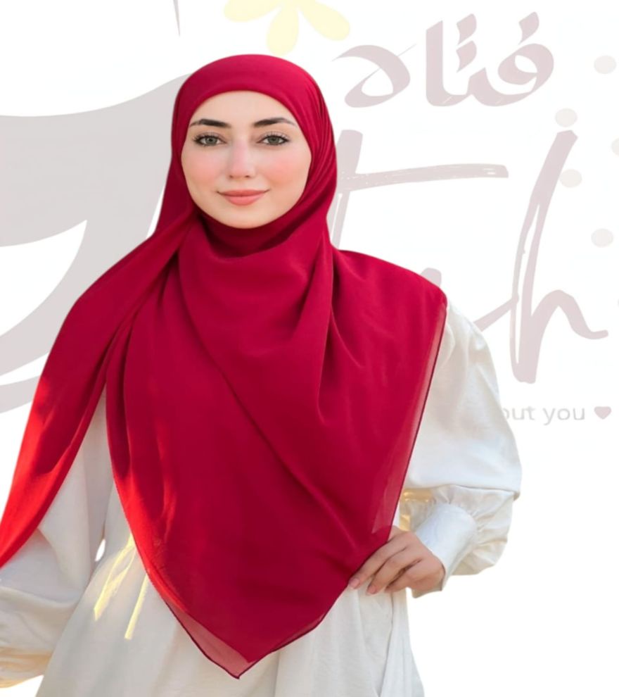 اختاري التميز وتألقّي بثقة مع خمار ماليزي شيفون سادة باللون الأحمر – تصميم مربع بمقاس 150 × 150 سم يمنحكِ توازن مثالي بين النعومة والثبات في كل لفة.