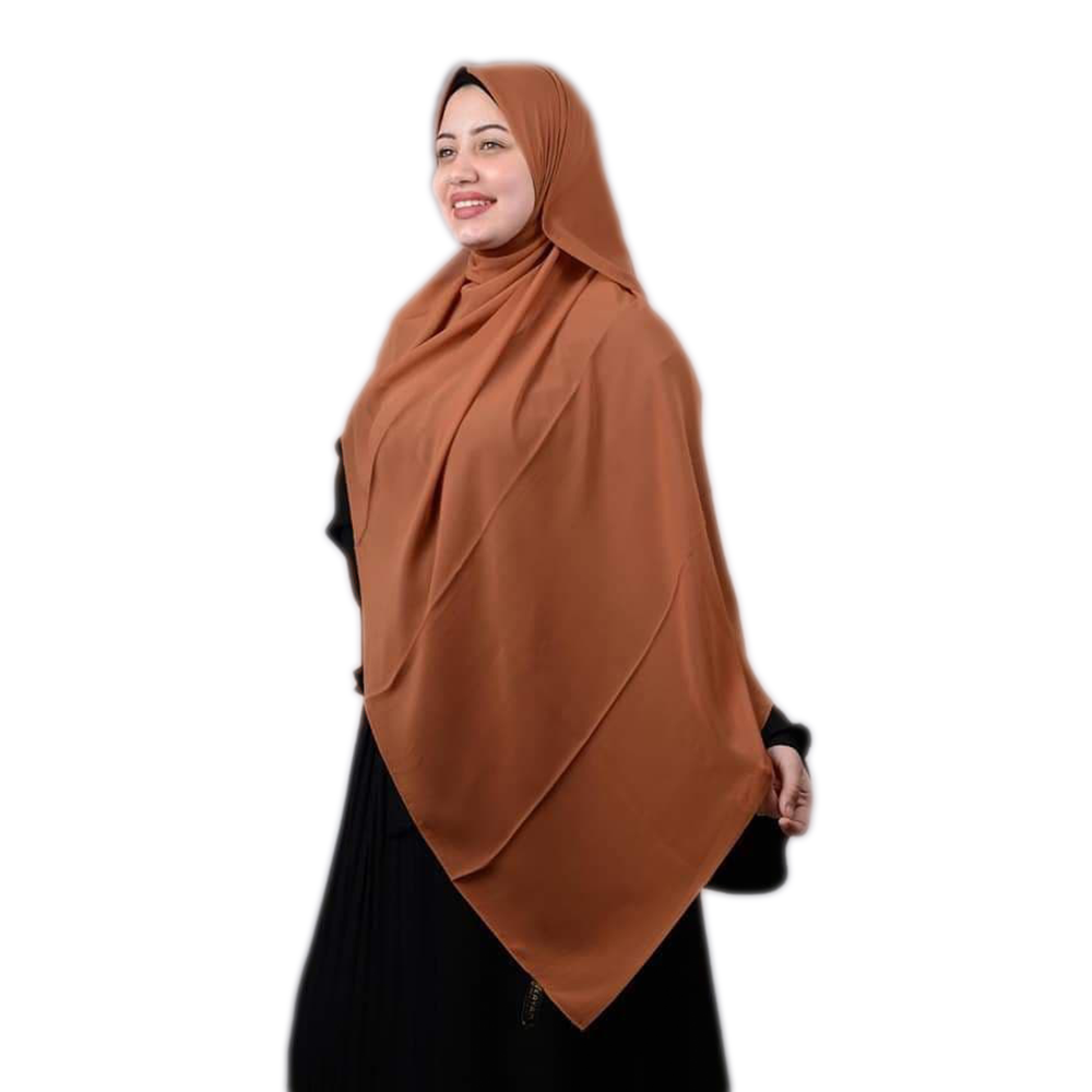 الخامة شيفون ناعمة جدًا ومريحة على البشرة، تمنحك إحساس خفيف كأنك مش لابسة حاجة، لكن في نفس الوقت ثابتة وبتدي تغطية ممتازة. اللون البني الناعم من أكتر الألوان اللي بتليق على كل درجات البشرة، وسهل تنسيقه مع لبسك سواء كان كاجوال أو كلاسيك.