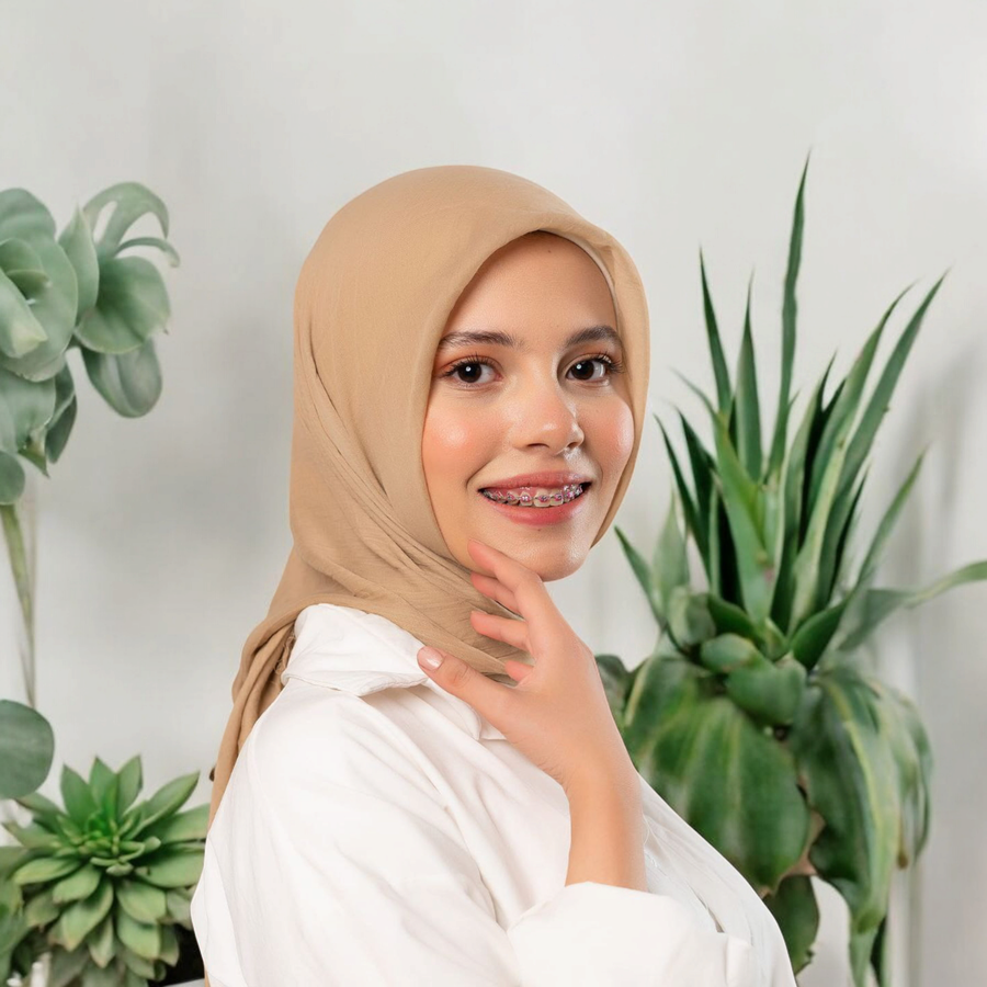 سكارف شاش سادة لون بيج – خفيف، أنيق، ومناسب لكل الإطلالات