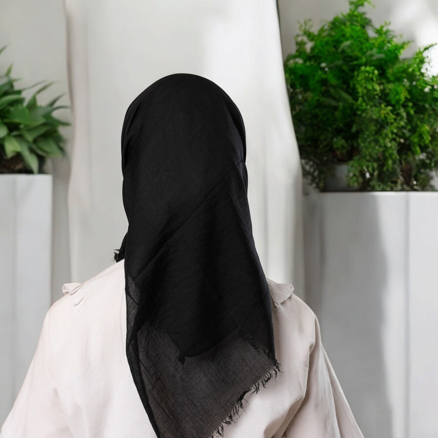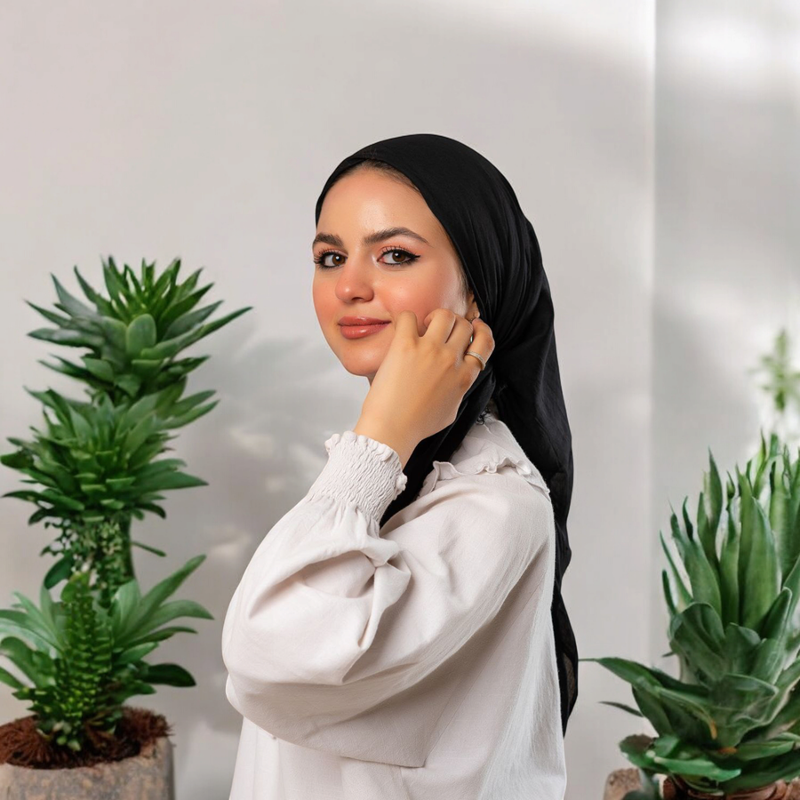 سكارف شاش سادة أسود – خفيف، أنيق، ومناسب لكل الإطلالات