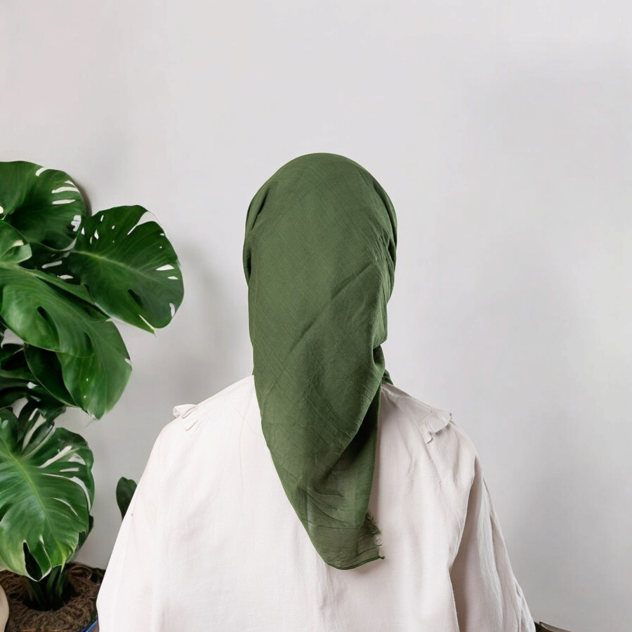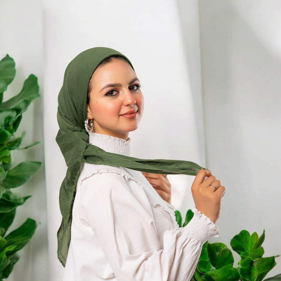 سكارف شاش سادة لون زيتي – خفيف، أنيق، ومناسب لكل الإطلالات