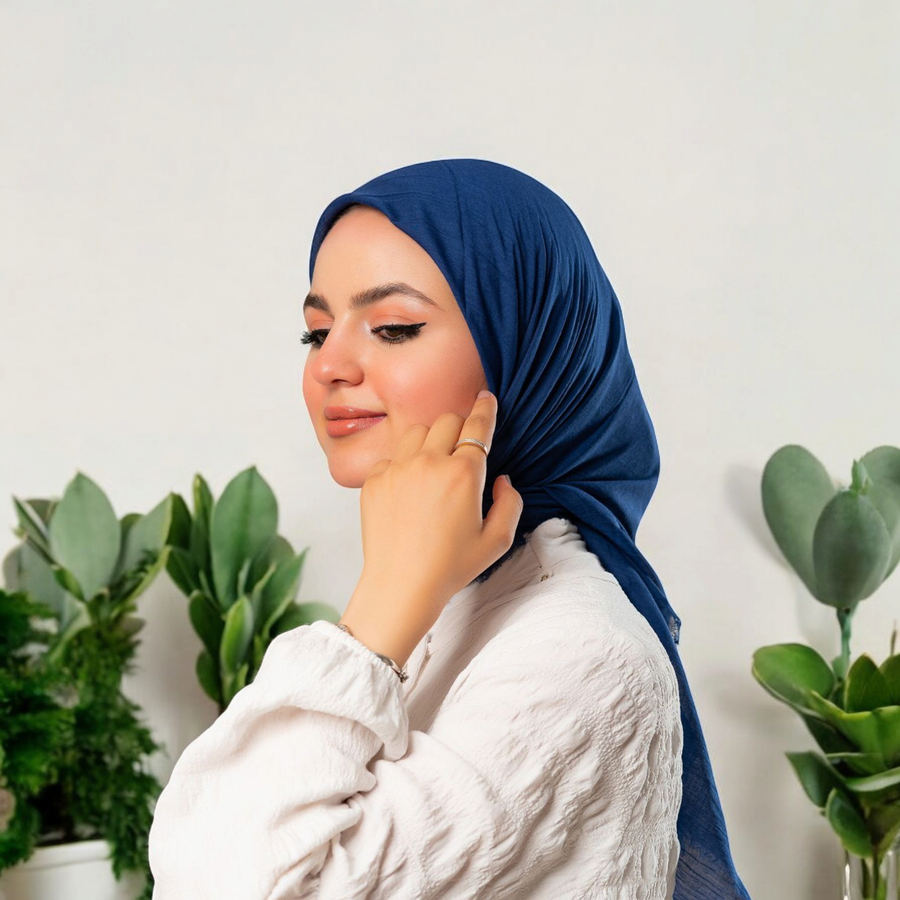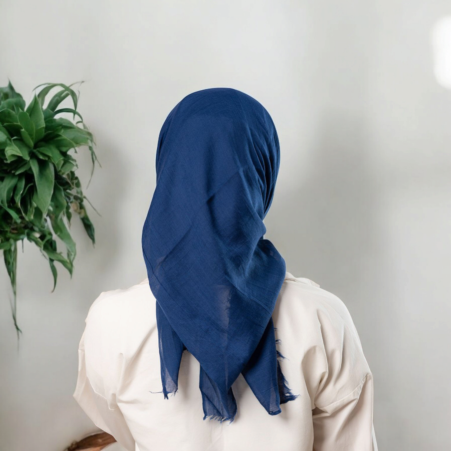 سكارف شاش سادة ازرق كحلي – خفيف، أنيق، ومناسب لكل الإطلالات