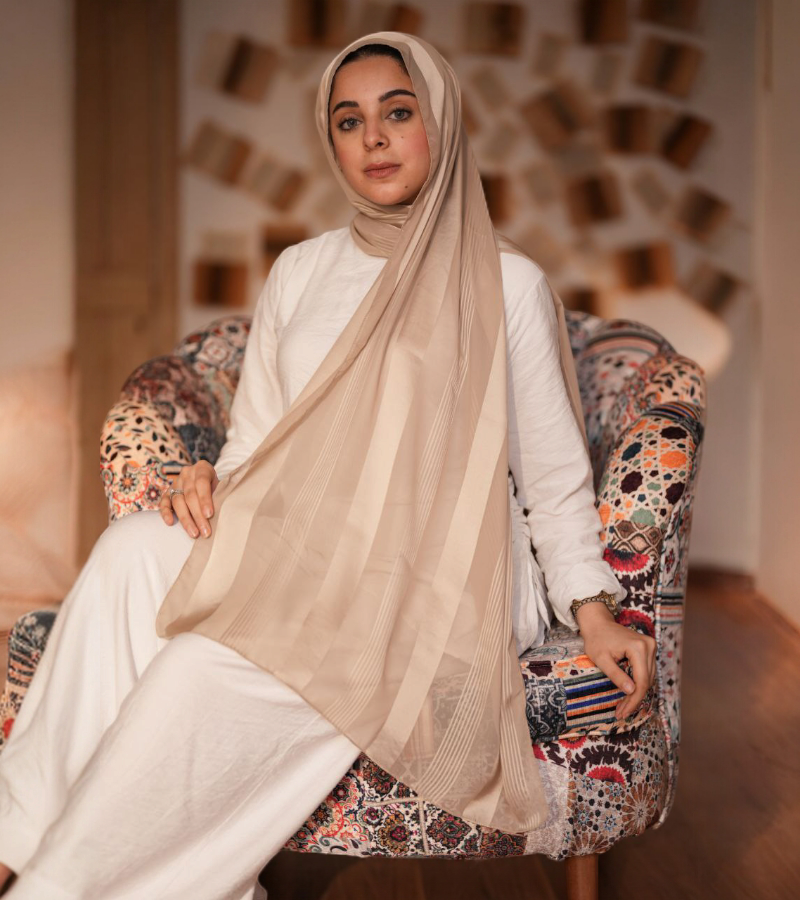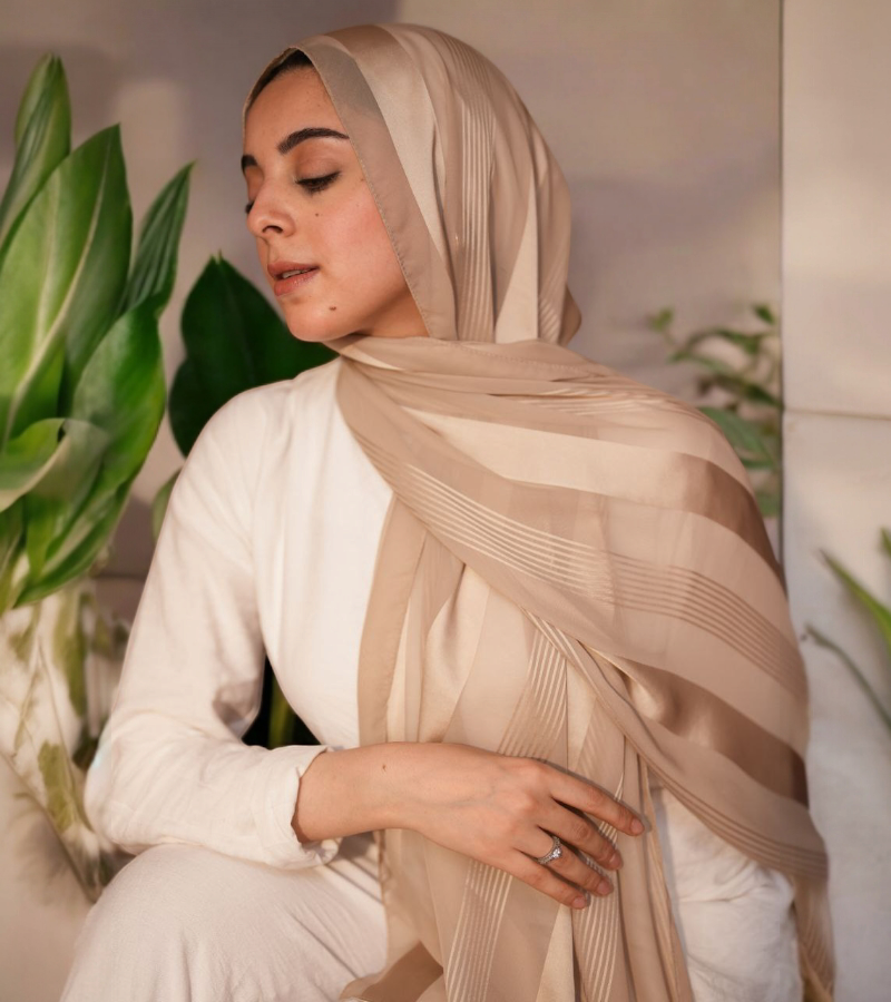 المقاس الكبير (185 × 75 سم) بيديكي حرية كاملة في لف الطرحة بالستايل اللي تحبيه – سواء لفات كلاسيك أو مودرن، في مناسباتك أو خروجاتك اليومية.