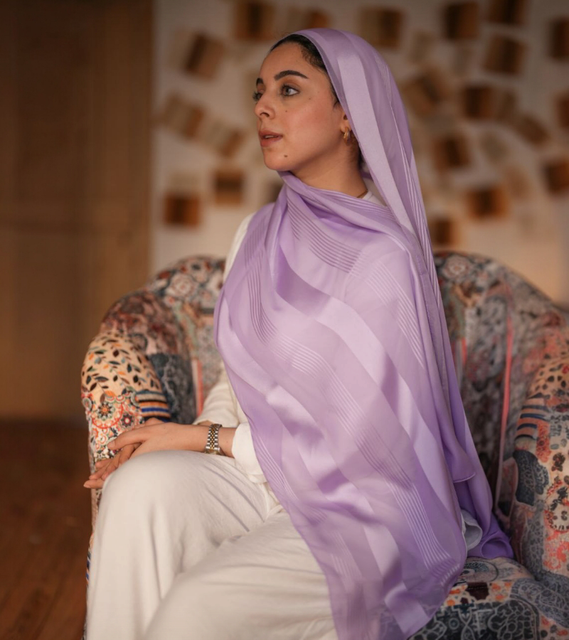 طرحه حرير في ستان لون لافندر