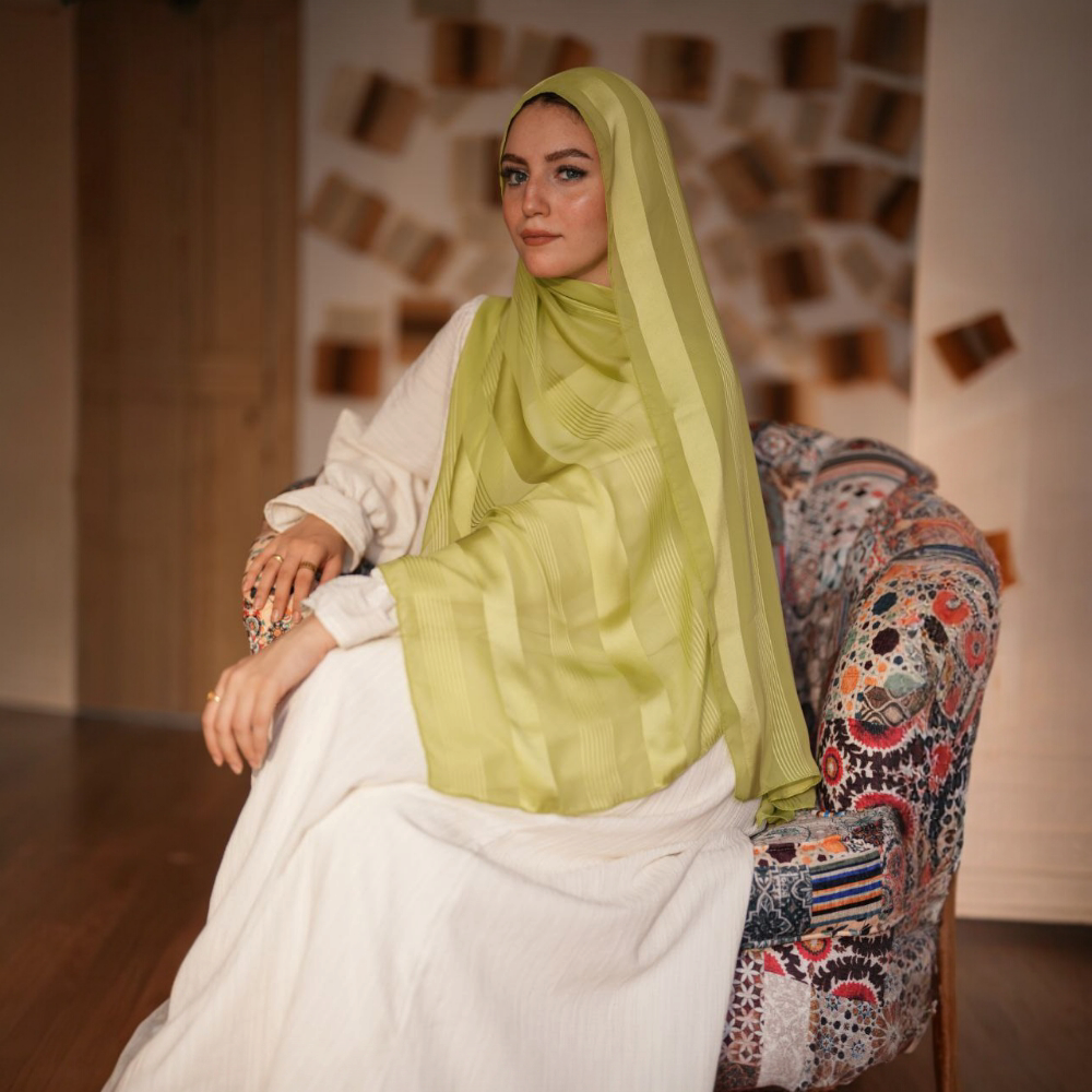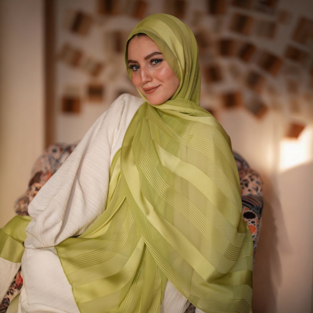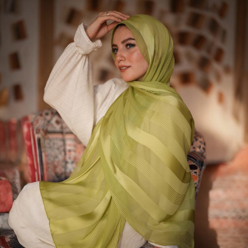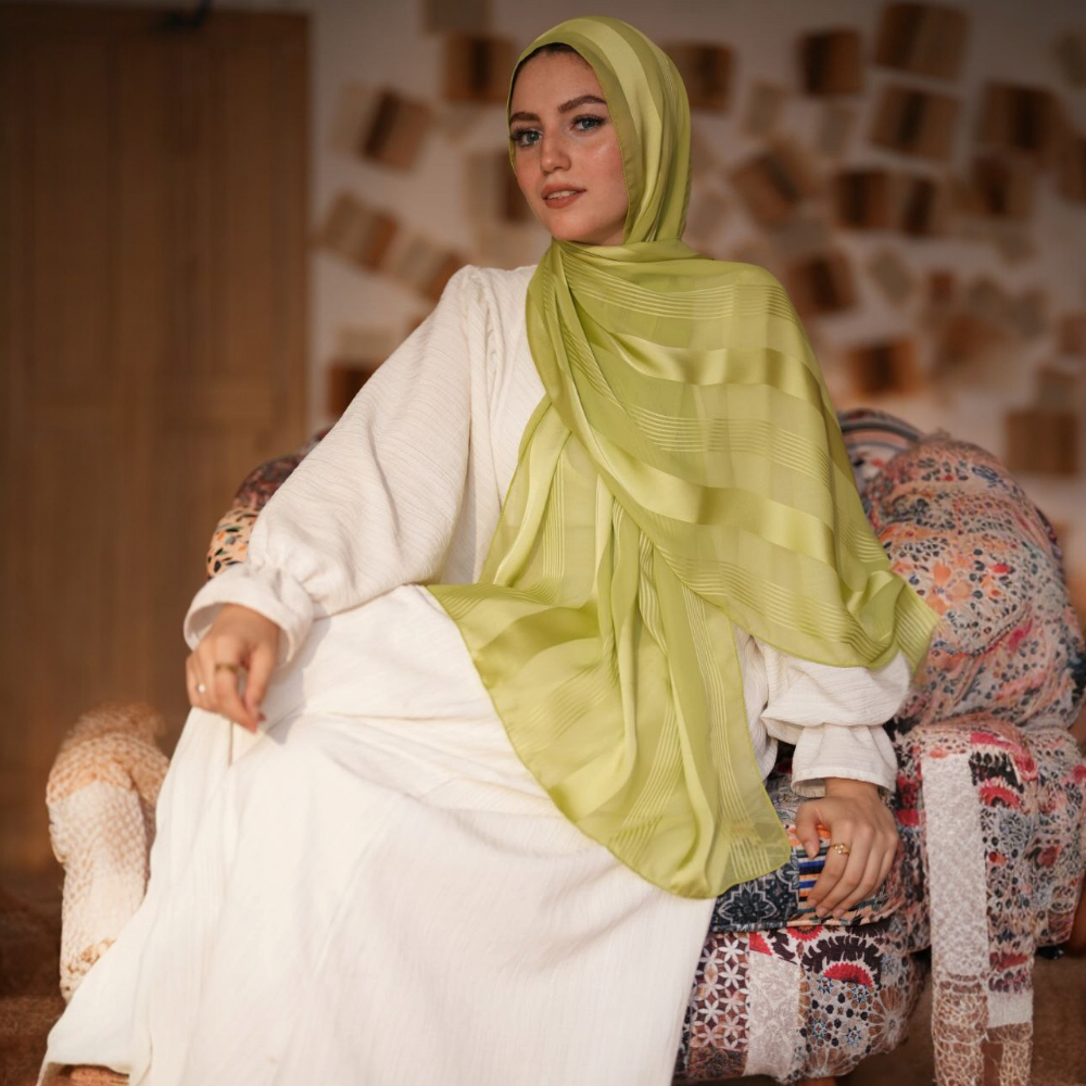 المقاس الكبير (185 × 75 سم) بيديكي حرية كاملة في لف الطرحة بالستايل اللي تحبيه – سواء لفات كلاسيك أو مودرن، في مناسباتك أو خروجاتك اليومية.