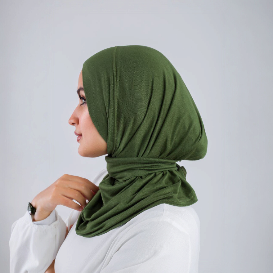 اكتشفي البندانة الطباقية الكويتي بلون زيتي جذاب من قطن ليكرا الناعم، برباط خلفي وكباسين مقاومة للصدأ لتثبيت مثالي. بندانة مريحة وعملية لكل المحجبات بألوان تنطق أناقة.