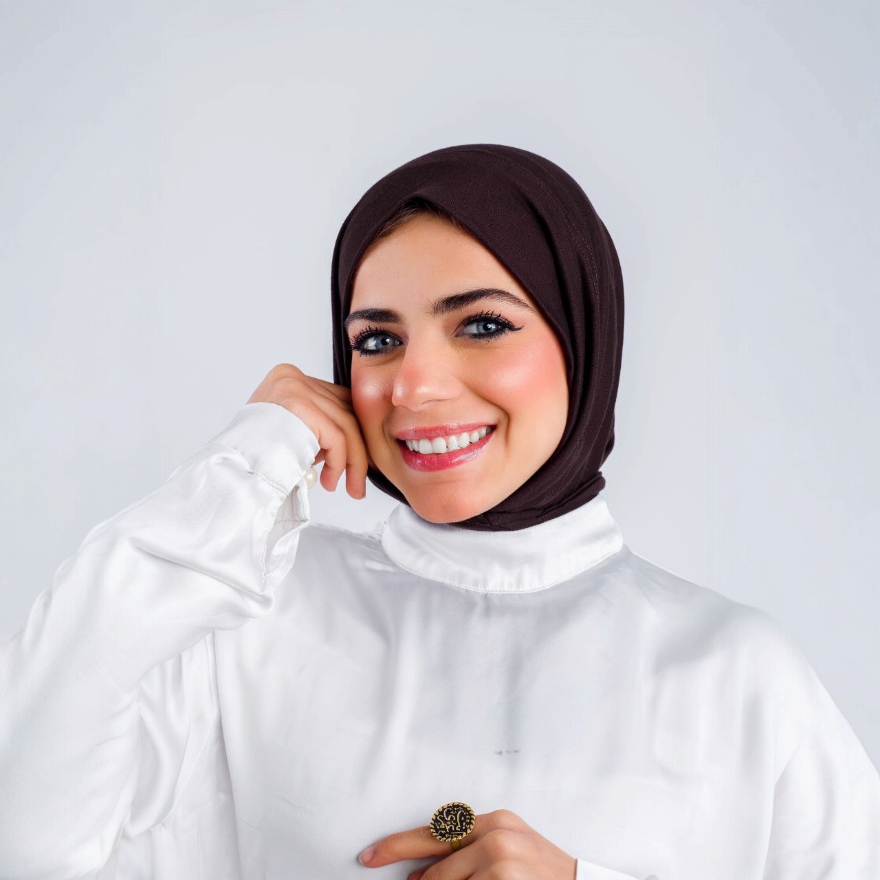 لونها البني الغامق يمنحك إطلالة دافئة وسهلة التنسيق مع أغلب الألوان، سواء كنتِ ترتدين طرحة كاجوال أو إطلالة رسمية.