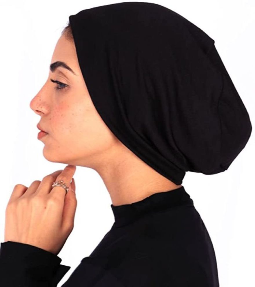 بندانة بونيه بدون خياطة بلون أسود كلاسيكي، مصنوعة من قطن ليكرا ناعم ومرن يمنحك راحة وثبات طوال اليوم. مثالية للمحجبات الباحثات عن الأناقة والعملية مع جودة عالية.