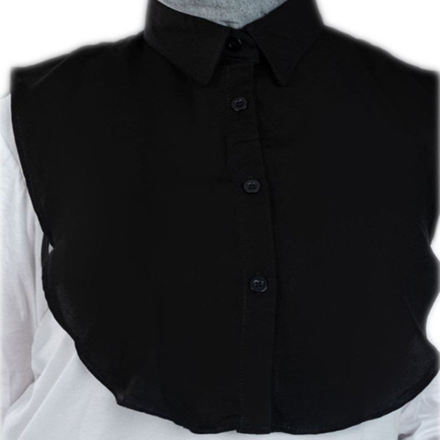 ياقة حجاب باللون الأسود تضيف لمسة من الأناقة العملية والاحتشام العصري لكل فتاة محجبة.