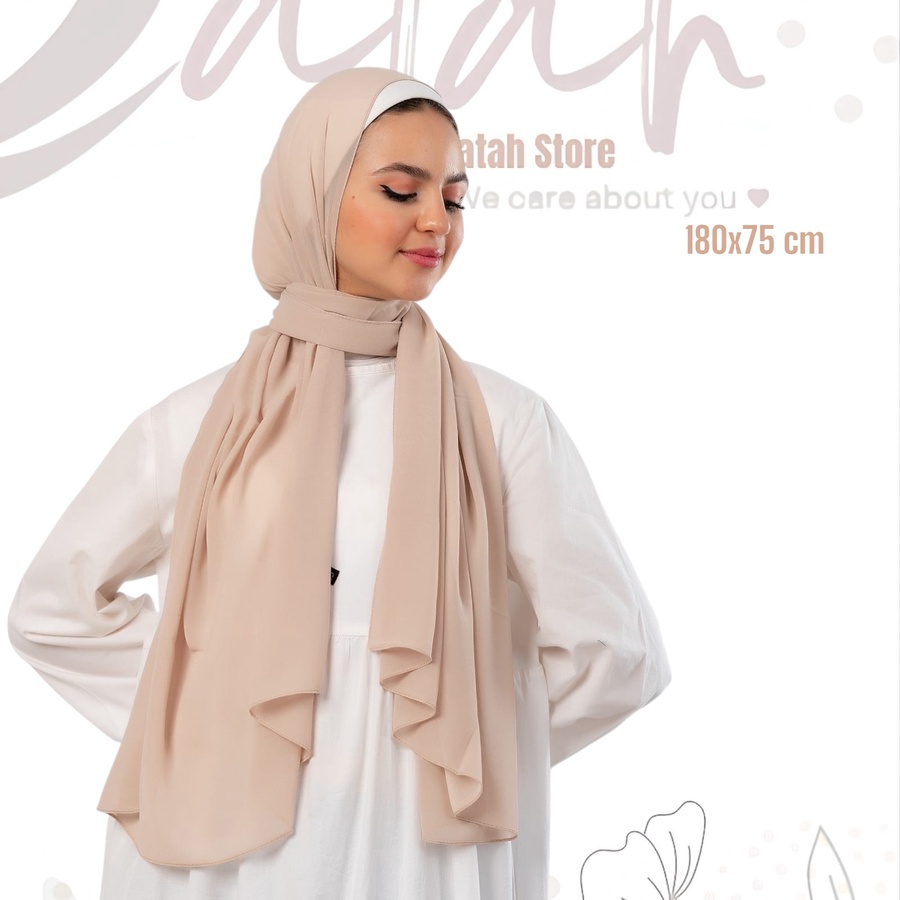 طرحة شيفون سادة لون بيج بيور بودر – طرحة محجبات كريب ناعمة بتقفيل ليزر عالي الجودة