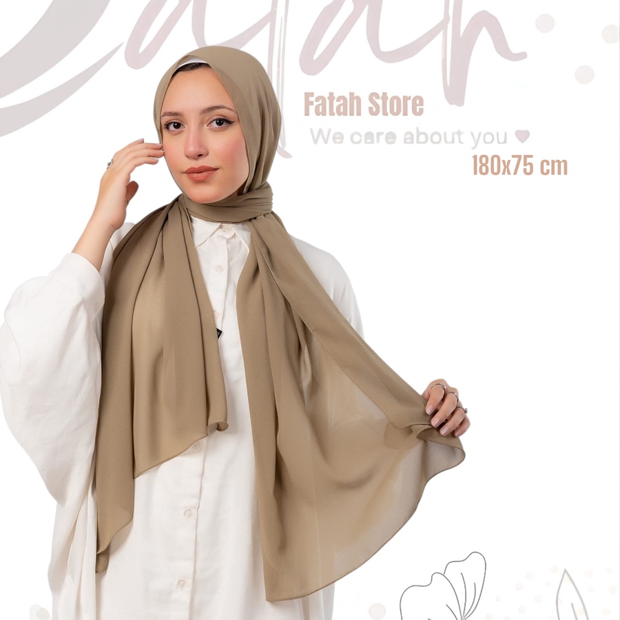 طرحة شيفون سادة لون كافيه ترابي– طرحة محجبات كريب ناعمة بتقفيل ليزر عالي الجودة
