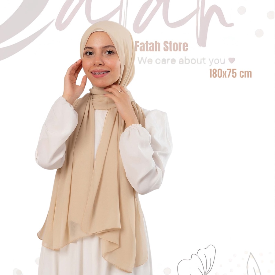 طرحة شيفون سادة لون بيج – طرحة محجبات كريب ناعمة بتقفيل ليزر عالي الجودة