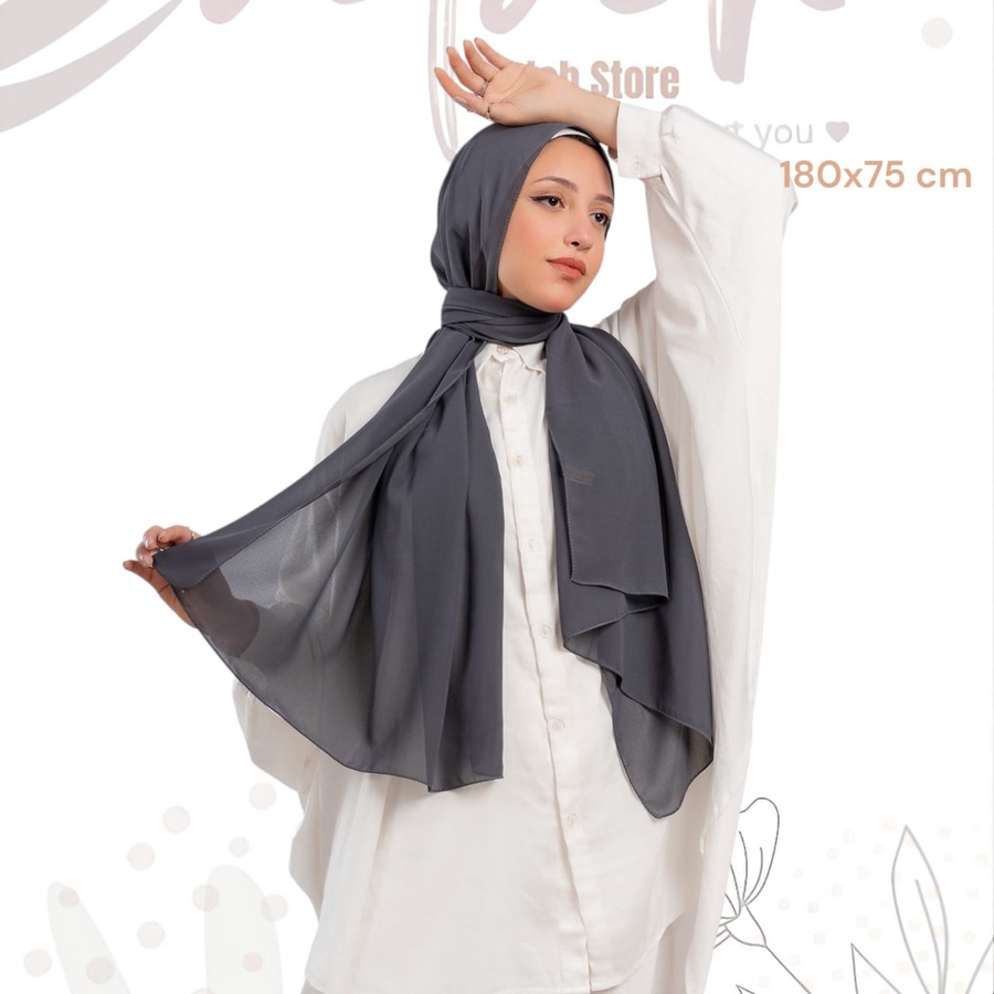 طرحة شيفون سادة لون رصاصي غامق – طرحة محجبات كريب ناعمة بتقفيل ليزر عالي الجودة