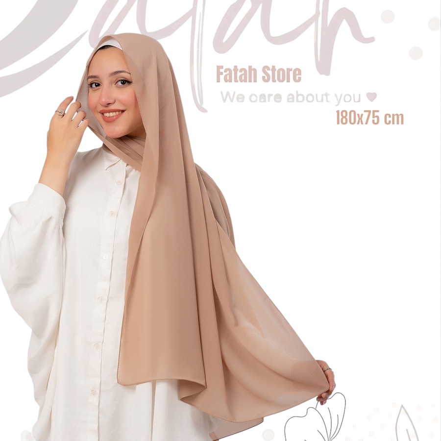 طرحة شيفون سادة لون بيج غامق– طرحة محجبات كريب ناعمة بتقفيل ليزر عالي الجودة