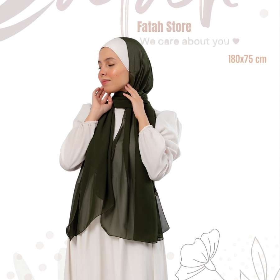 طرحة شيفون سادة لون اخضر ارمي – طرحة محجبات كريب ناعمة بتقفيل ليزر عالي الجودة