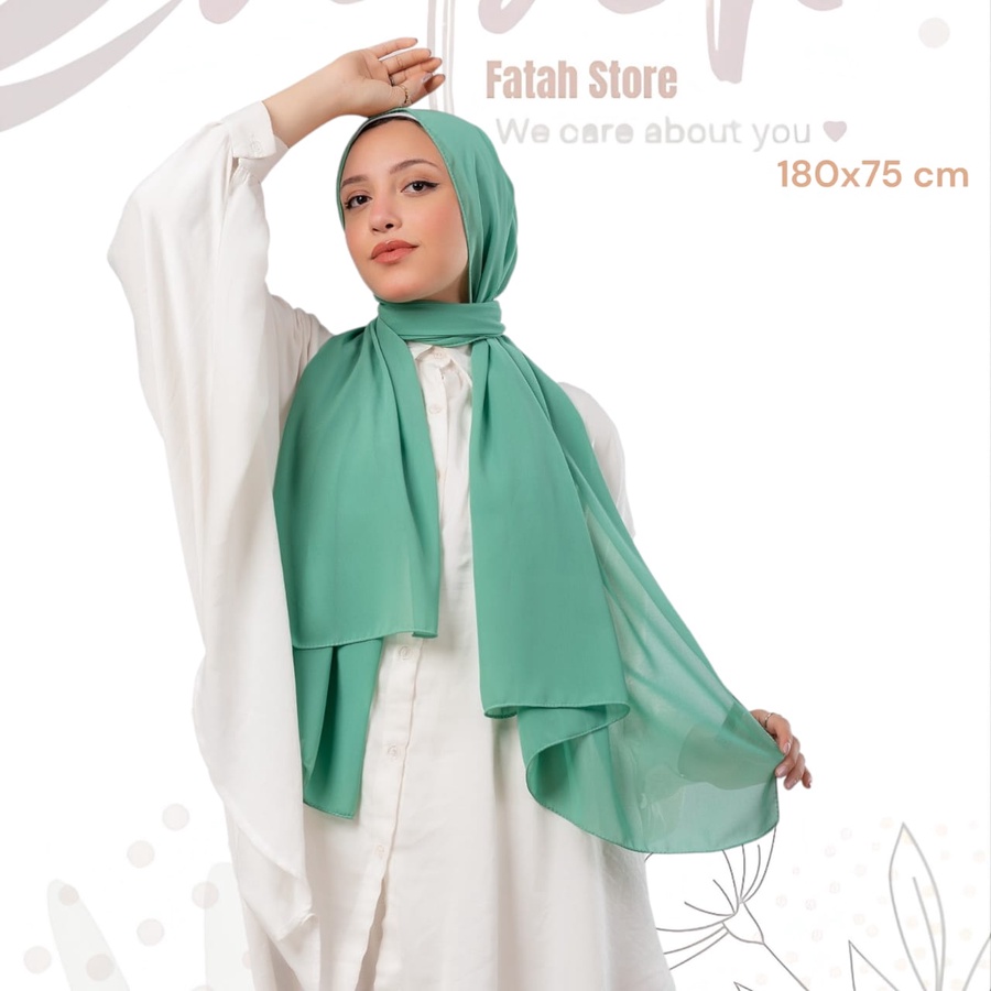 طرحة شيفون سادة لون اخضر نعناعي – طرحة محجبات كريب ناعمة بتقفيل ليزر عالي الجودة