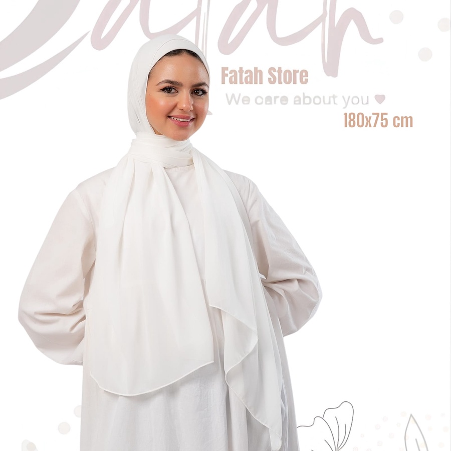 طرحة شيفون سادة لون اوف وايت – طرحة محجبات كريب ناعمة بتقفيل ليزر عالي الجودة