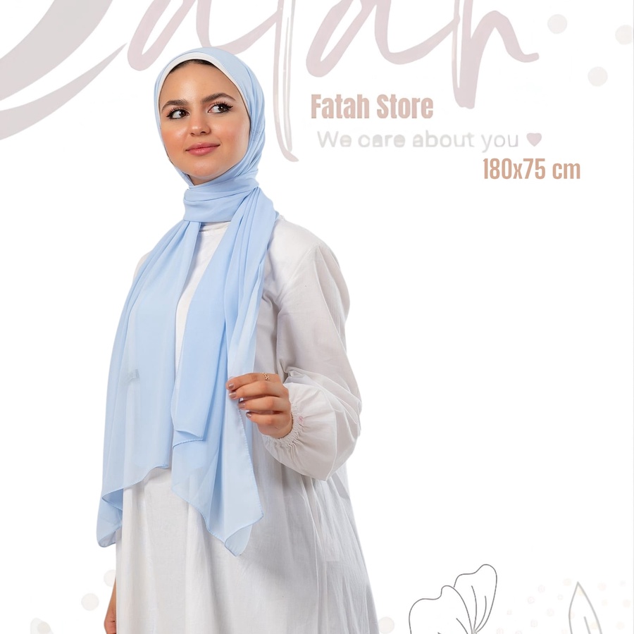 طرحة شيفون سادة لون بيبي بلو سوفت – طرحة محجبات كريب ناعمة بتقفيل ليزر عالي الجودة