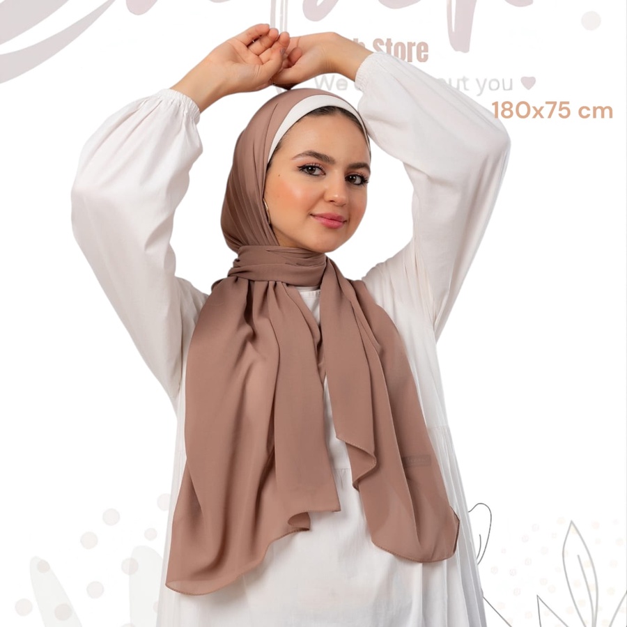 طرحة شيفون سادة لون كافيه فاتح – طرحة محجبات كريب ناعمة بتقفيل ليزر عالي الجودة