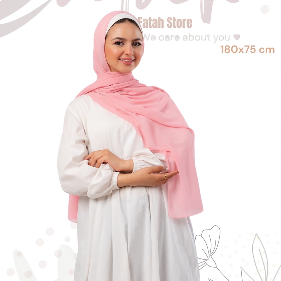 طرحة شيفون سادة لون وردي فاتح سوفت – طرحة محجبات كريب ناعمة بتقفيل ليزر عالي الجودة