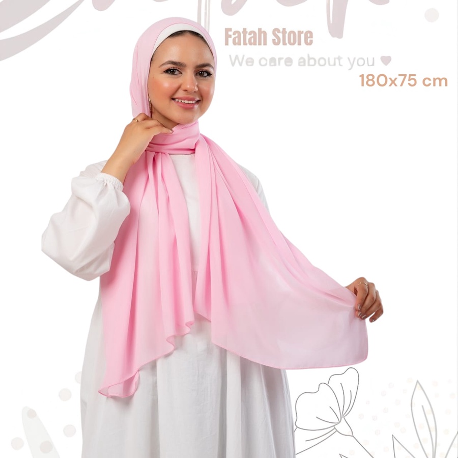 طرحة شيفون سادة لون وردي فاتح – طرحة محجبات كريب ناعمة بتقفيل ليزر عالي الجودة
