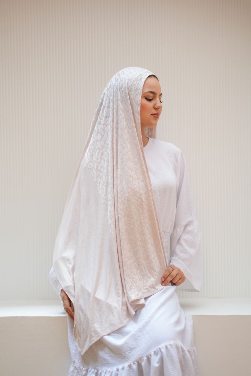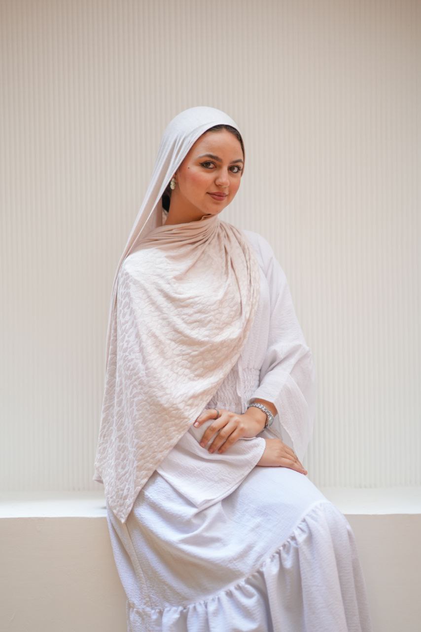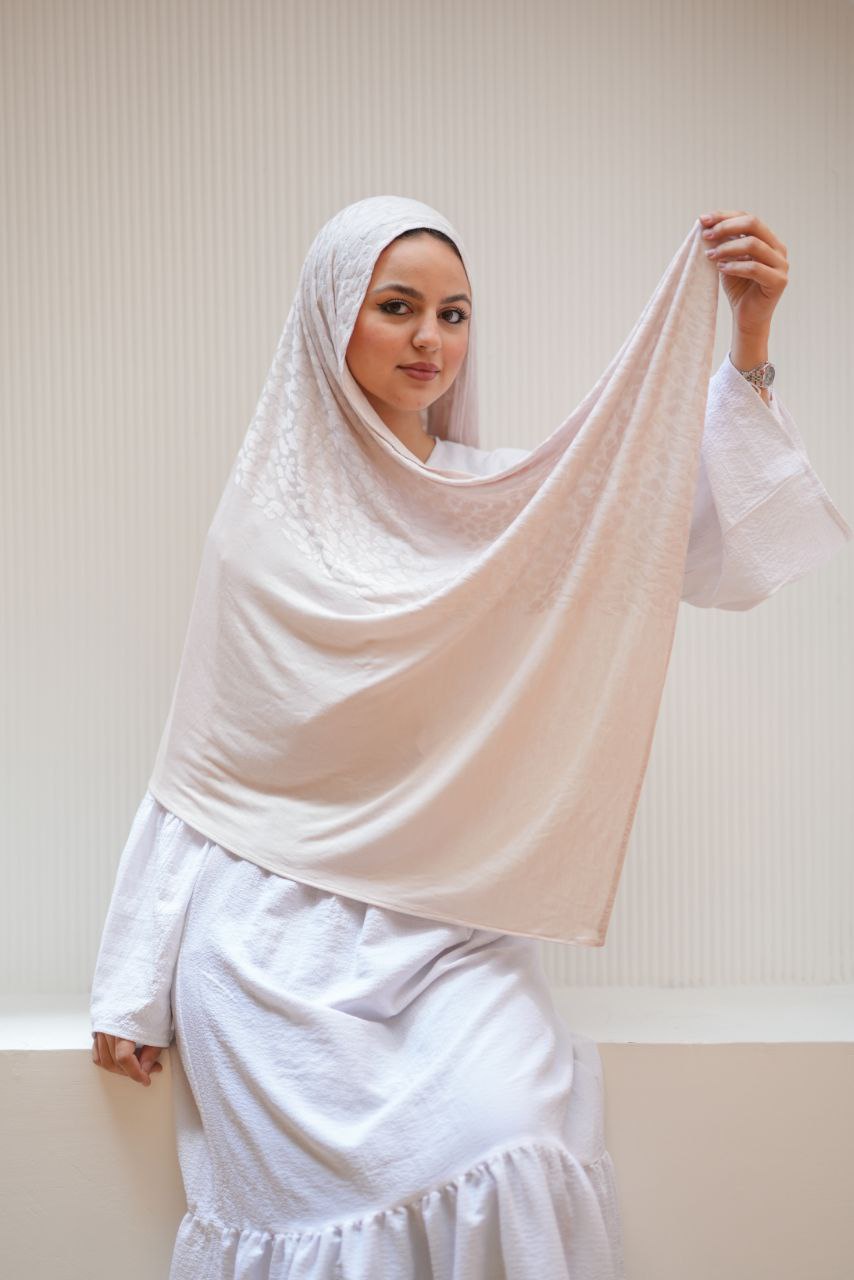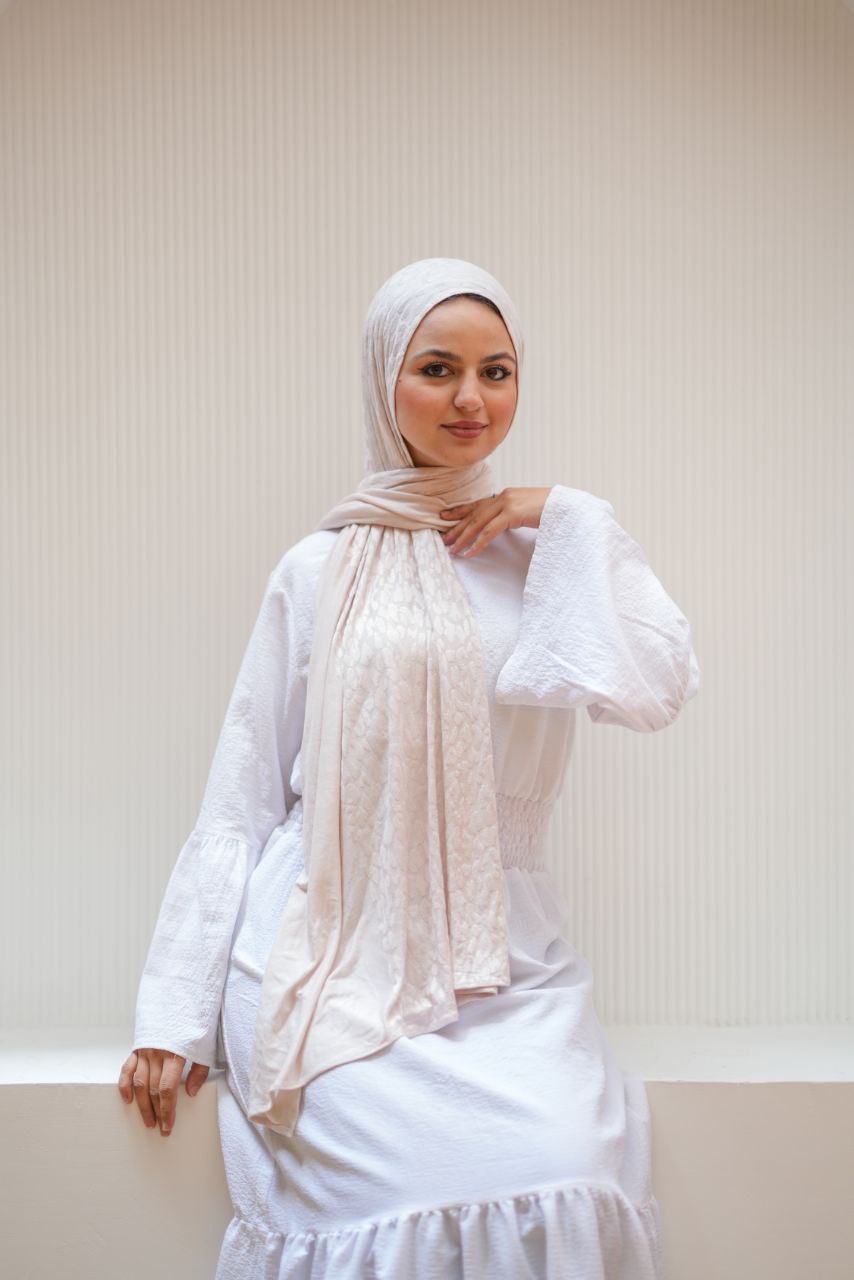 طرحة محجبات قطن كويتي | خفيفة ومريحة لون اوف وايت بنقشة تايجر