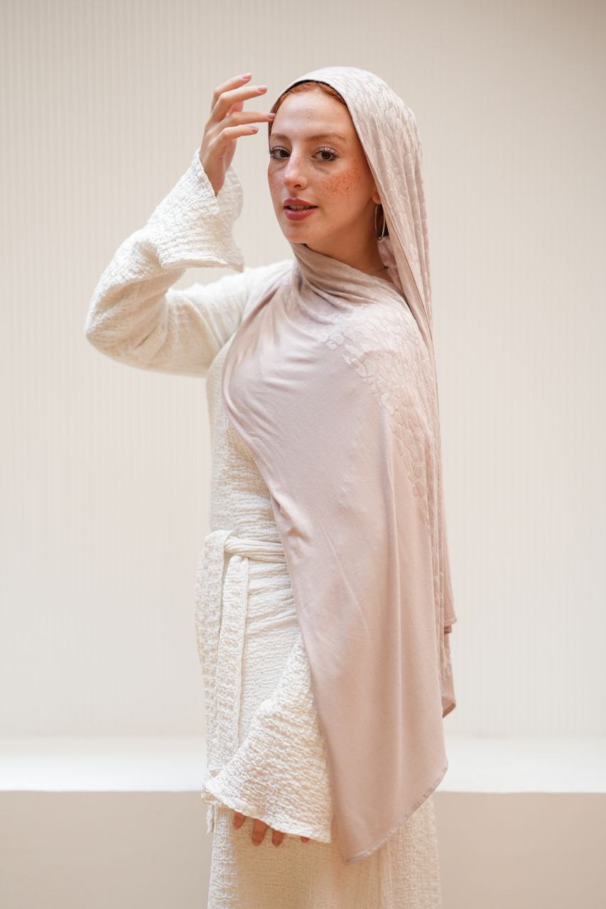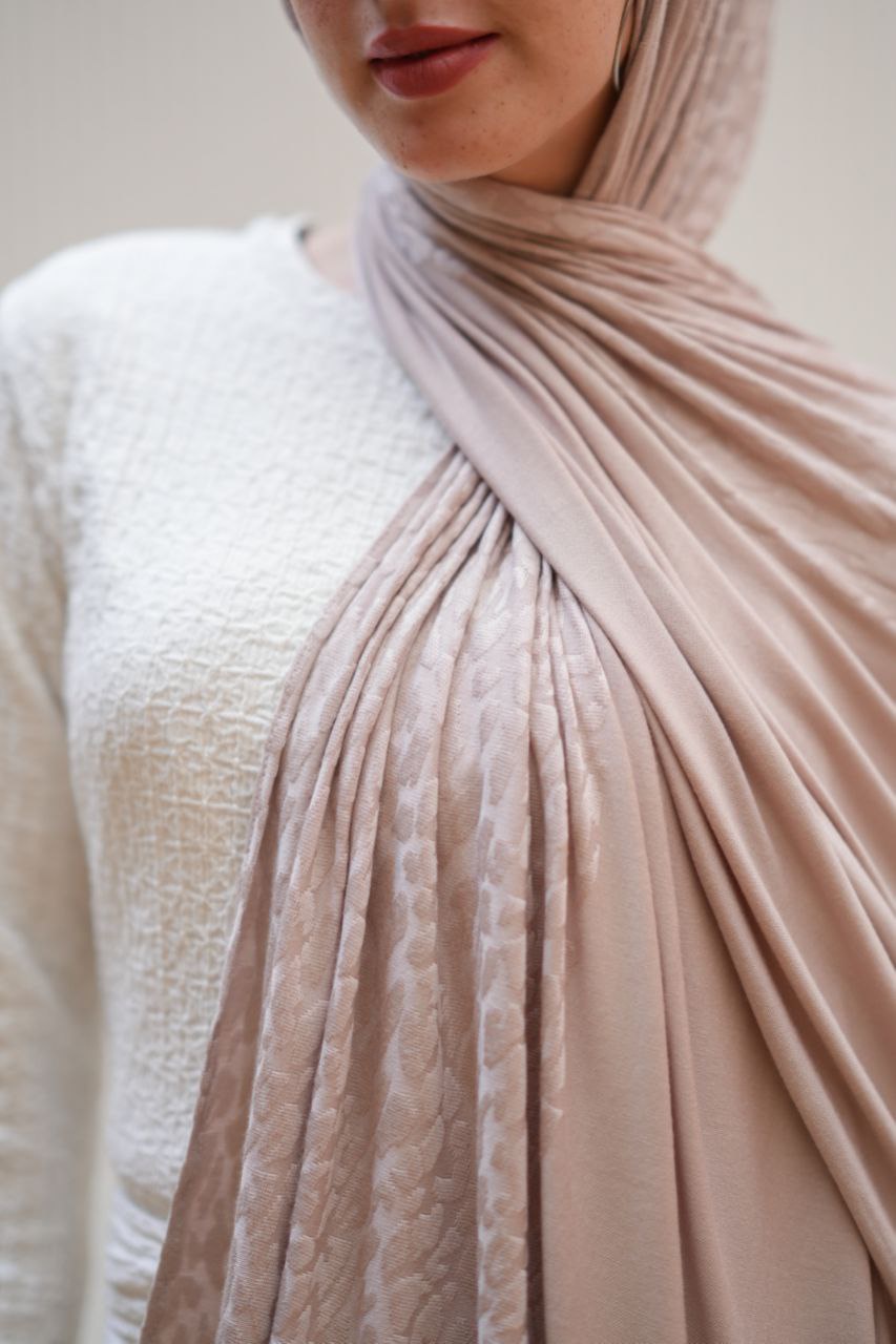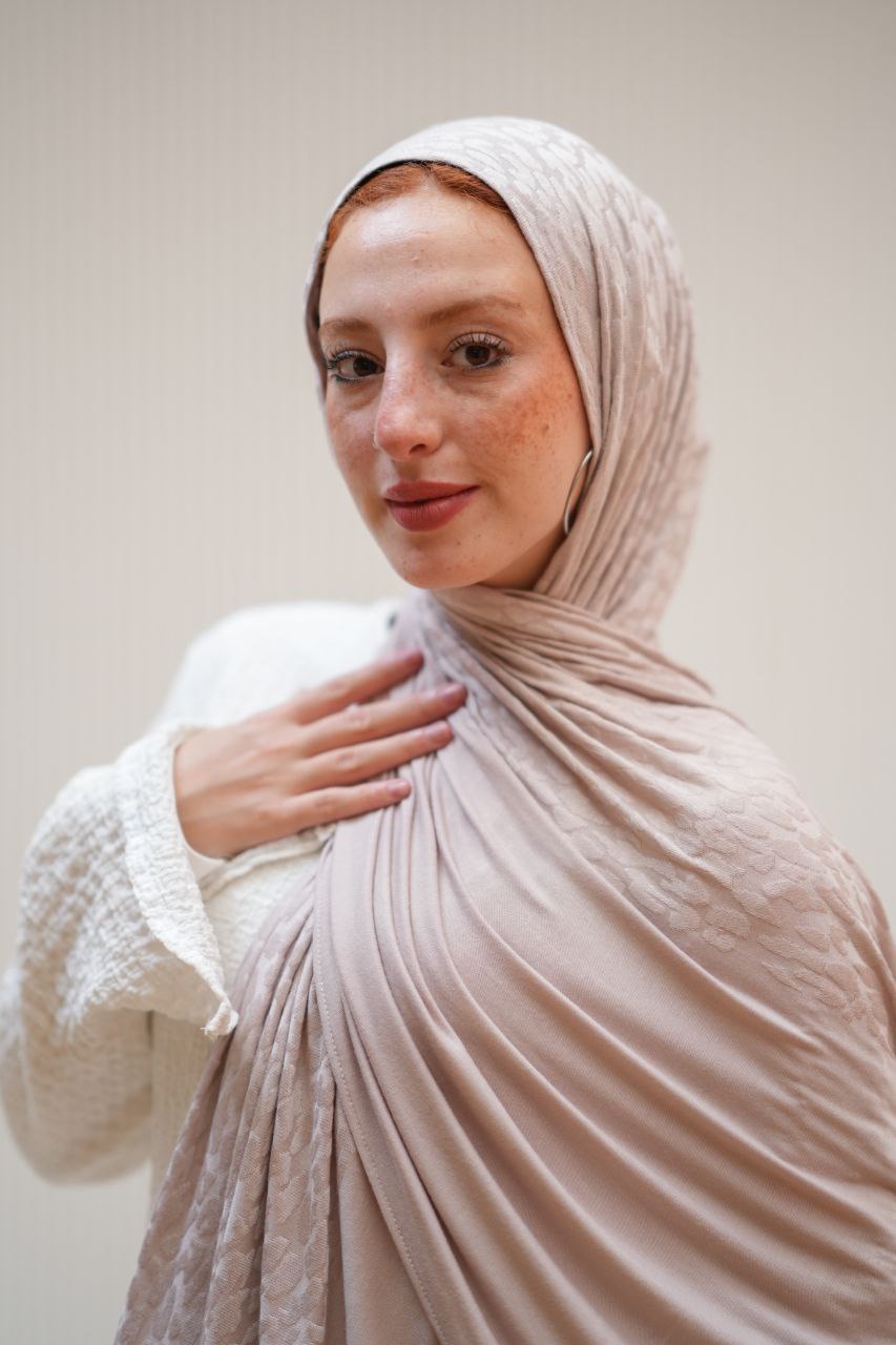 طرحة محجبات قطن كويتي | خفيفة ومريحة لون بيج بنقشة تايجر