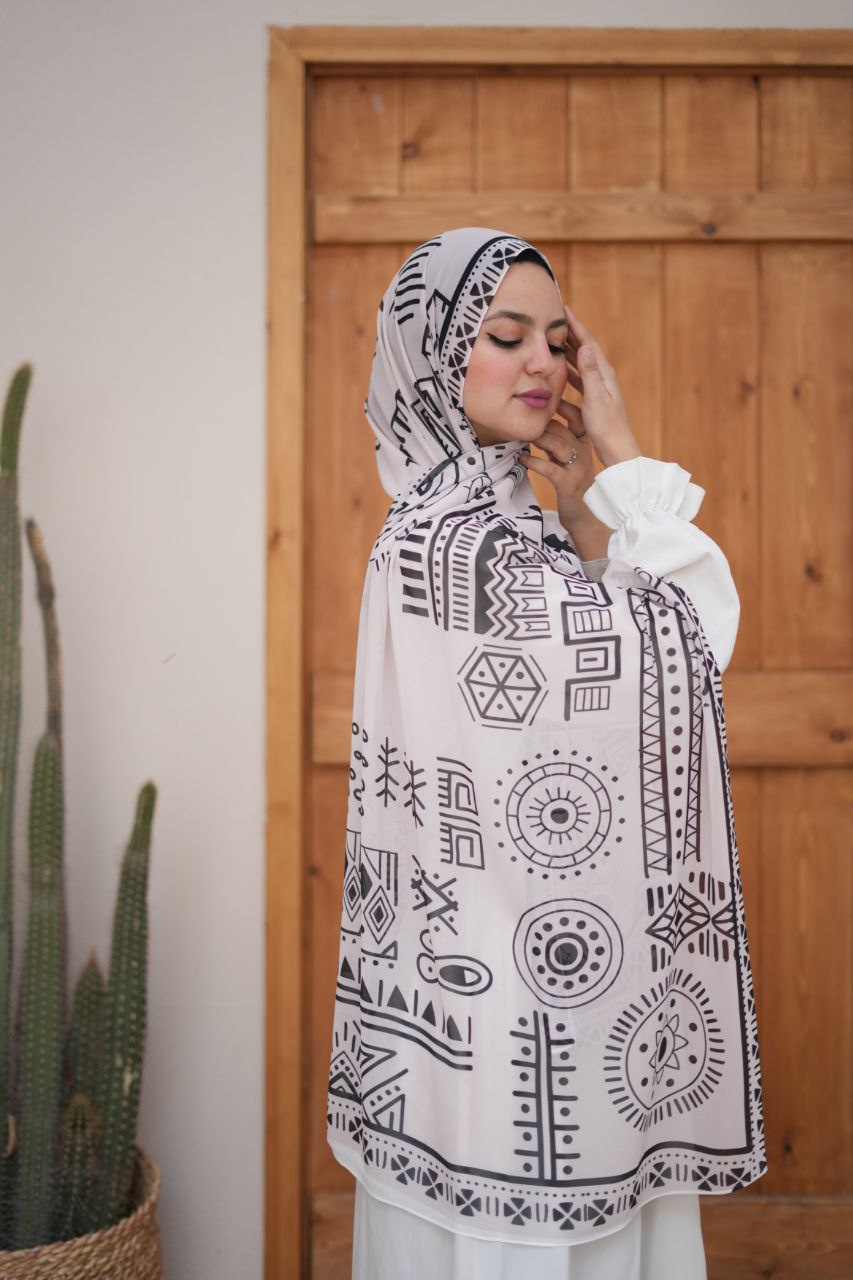 لو بتدوري على لمسة أنثوية ناعمة تكمّل أناقتك اليومية أو حتى المناسبات، فـ طرحة شيفون ديجيتال أبيض بتفاصيل أبيض هي الاختيار المثالي ليكِ.
