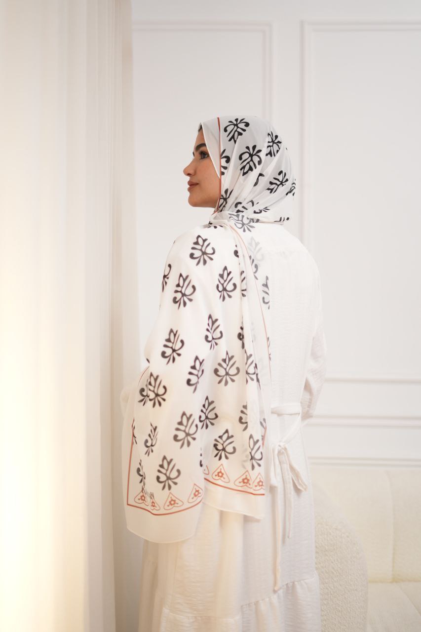 لو بتدوري على طرحة تديكي ستايل أنيق وكلاسيكي مع لمسة قوية وجريئة، طرحة شيفون ديجيتال أبيض × أسود × أحمر هي اختيارك المثالي!